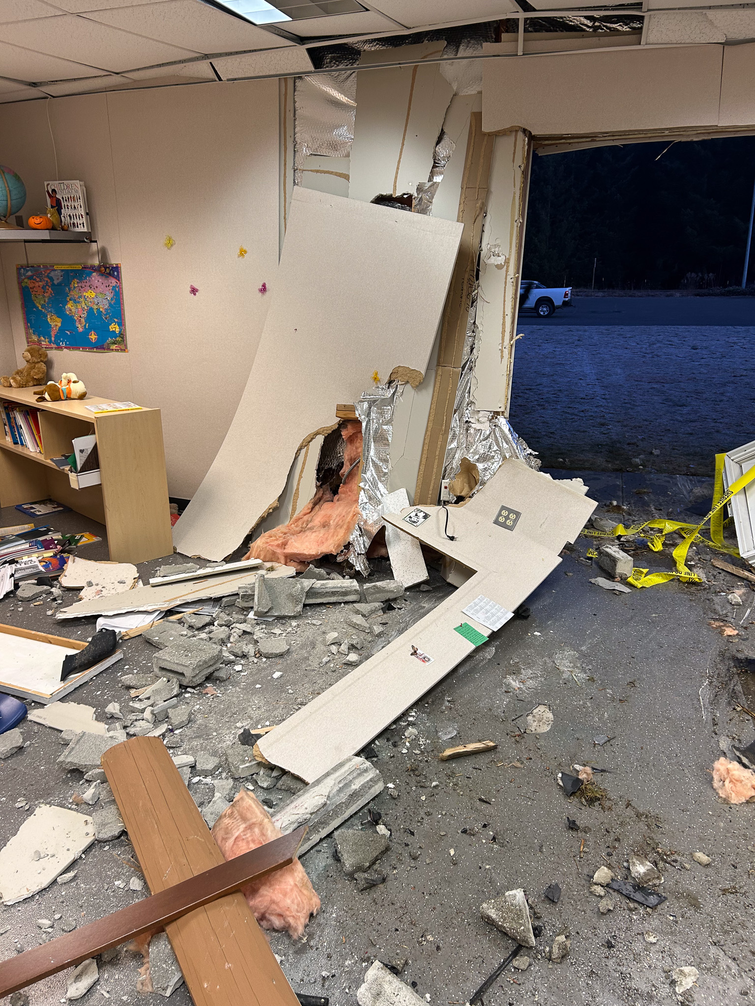 Mount Baker School District Interim Superintendent Nick Perigo says the crash was occurred at Kendall Elementary around 8:30 pm on Saturday, Jan. 25. He says the driver “failed to navigate a turn” at the Kendall Highway before the car went airborne and crashed through the side of the building.