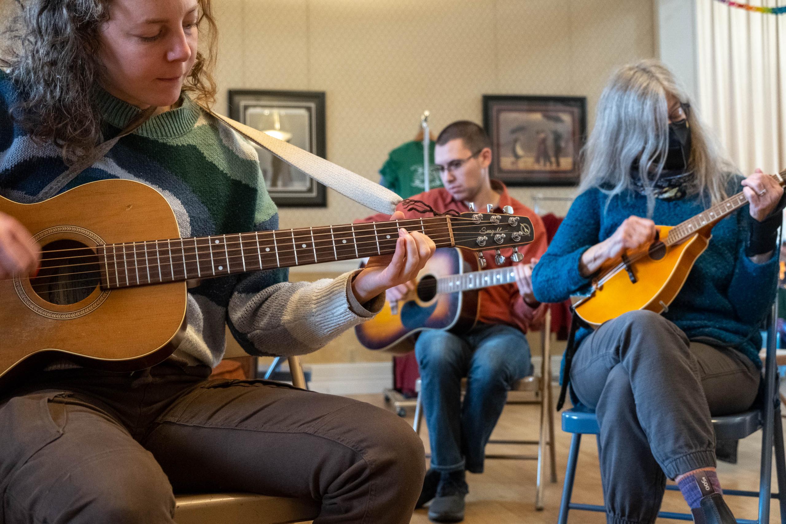 Students play guitar during Bellingham Folk Festival.