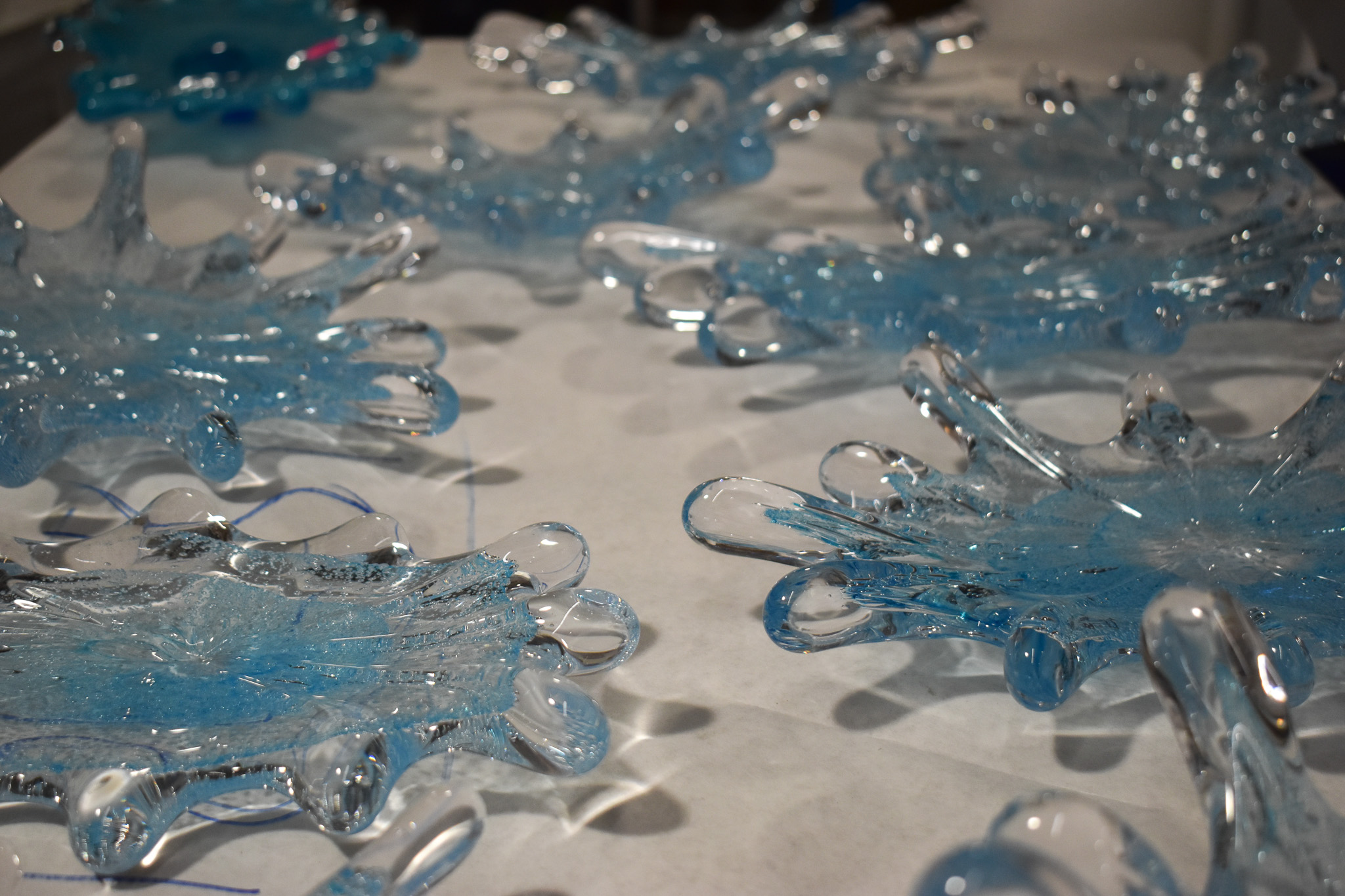 Though he has several highly trained glass sculptors working with him to create the waves, he is proud to say that he handles much of the crafting himself.
