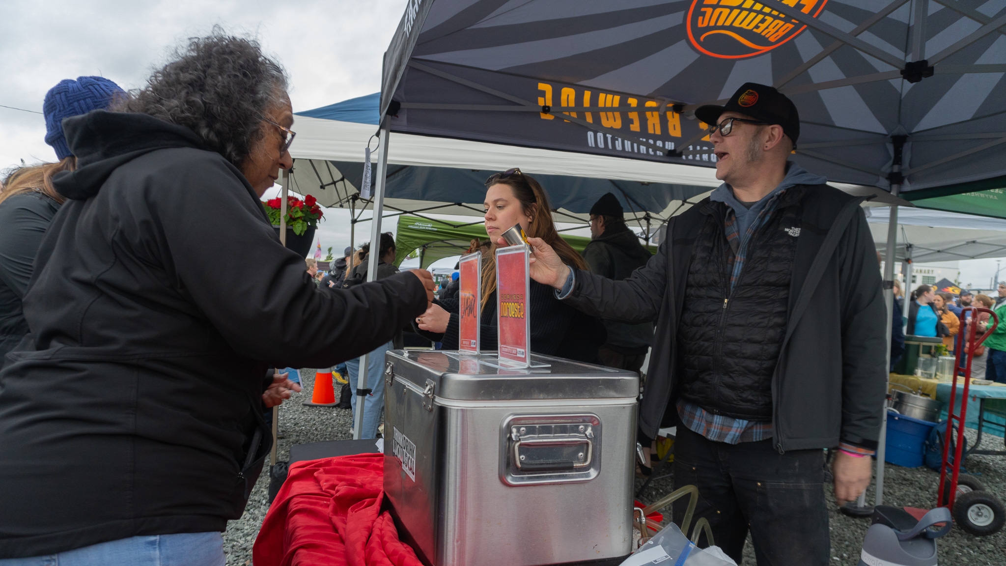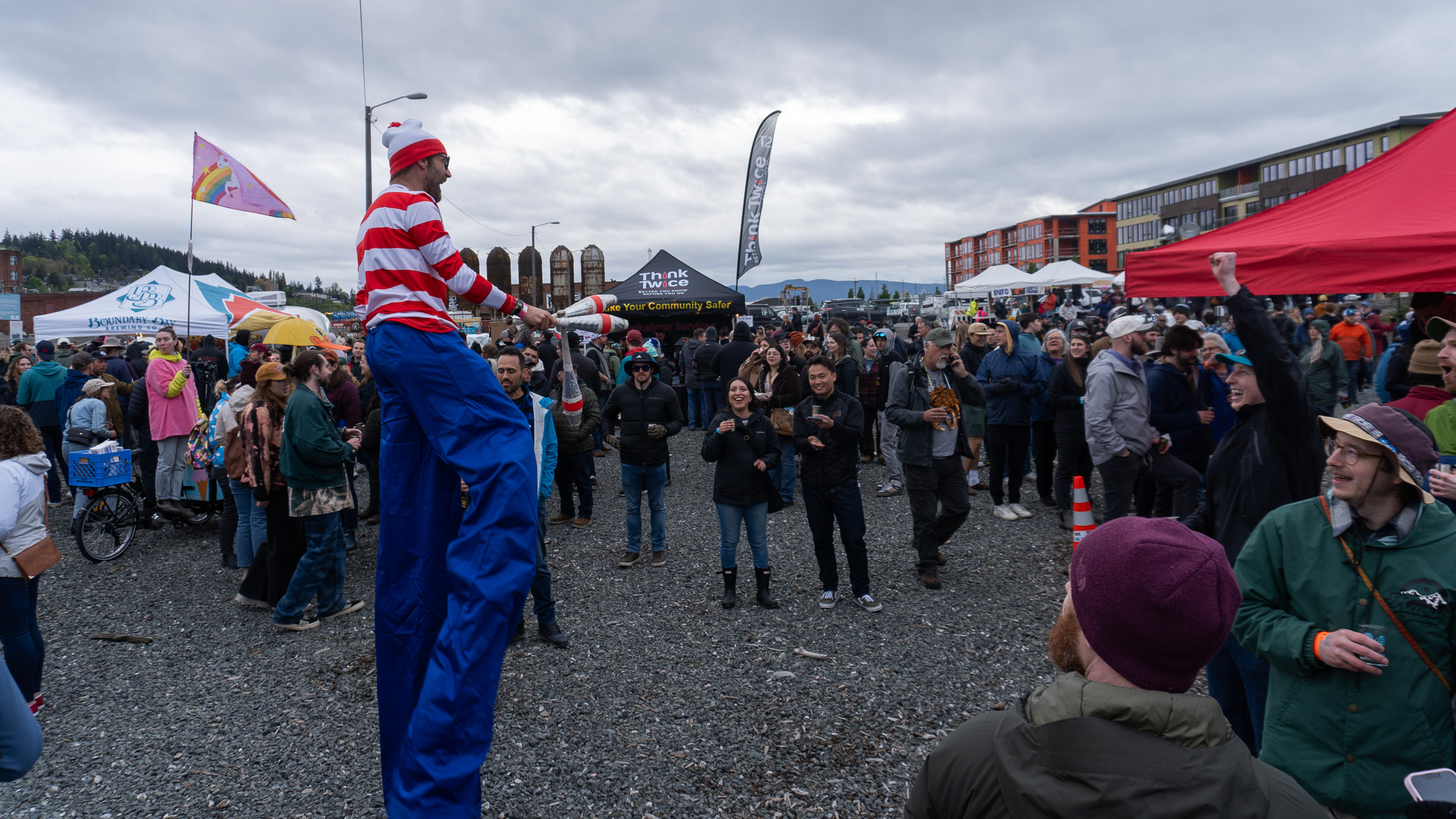 The outdoor event was jam-packed with locals and tourists alike down on the waterfront. Walking through the rows of brewers were members of the Bellingham Circus Guild. Jugglers on stilts and people wearing flamboyant outfits entertained eventgoers with balance, smiles and of course, juggling.