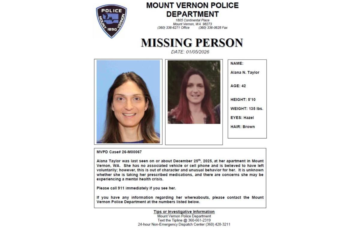 42-year-old Alana Taylor was last seen around Dec. 25 at her Mount Vernon apartment.