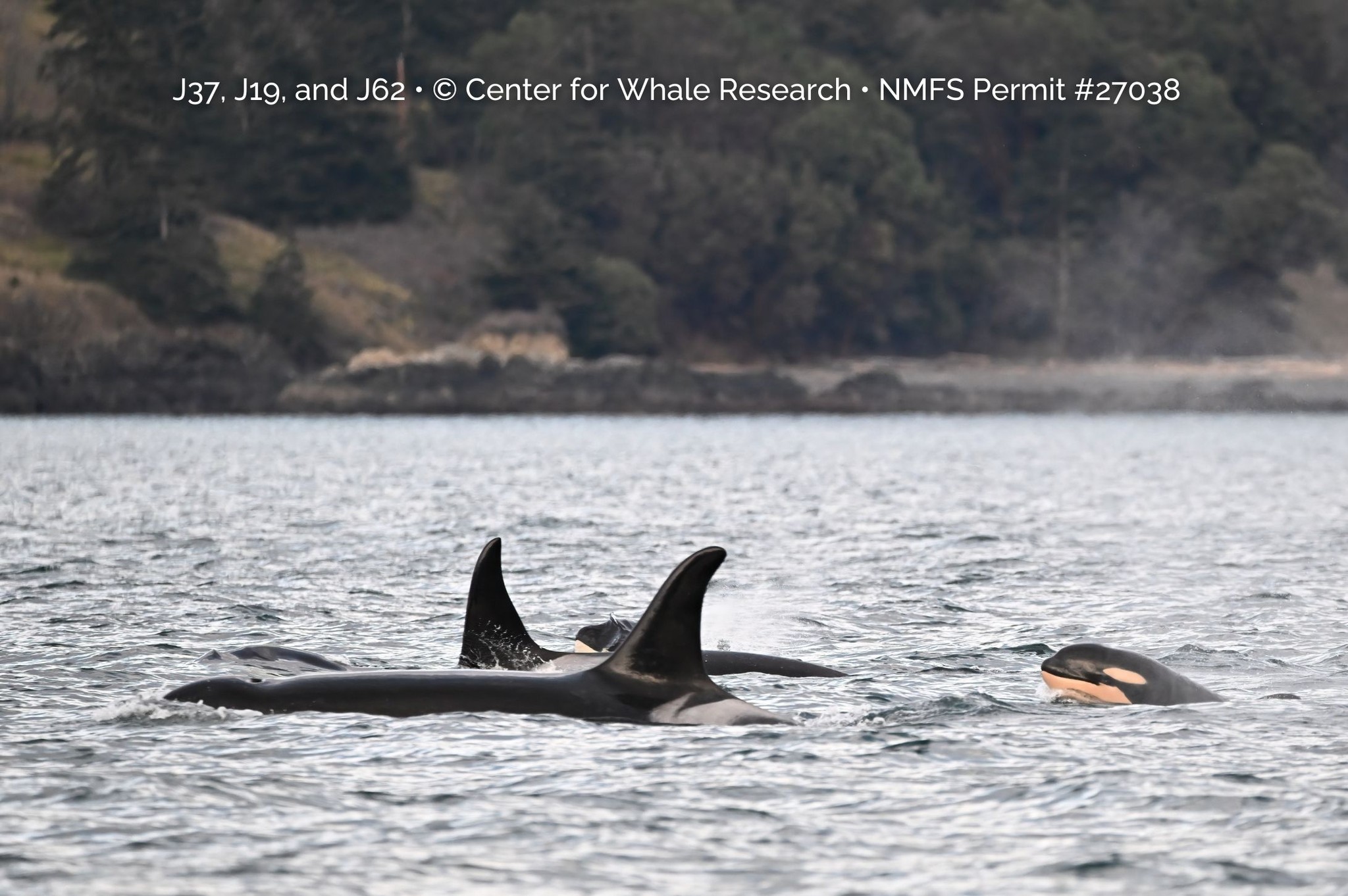 Researchers said in the Feb. 8 spotting that J62 seemed to be doing well, “bouncing around” between J41 and the others. Meanwhile J35, the mother that was carrying her dead calf’s body late last year, was no longer carrying the carcass.