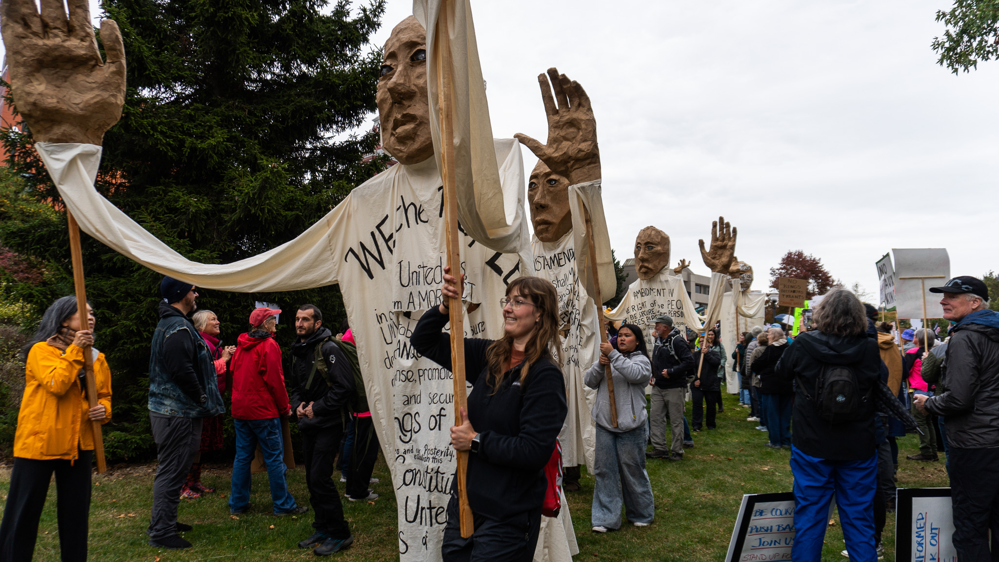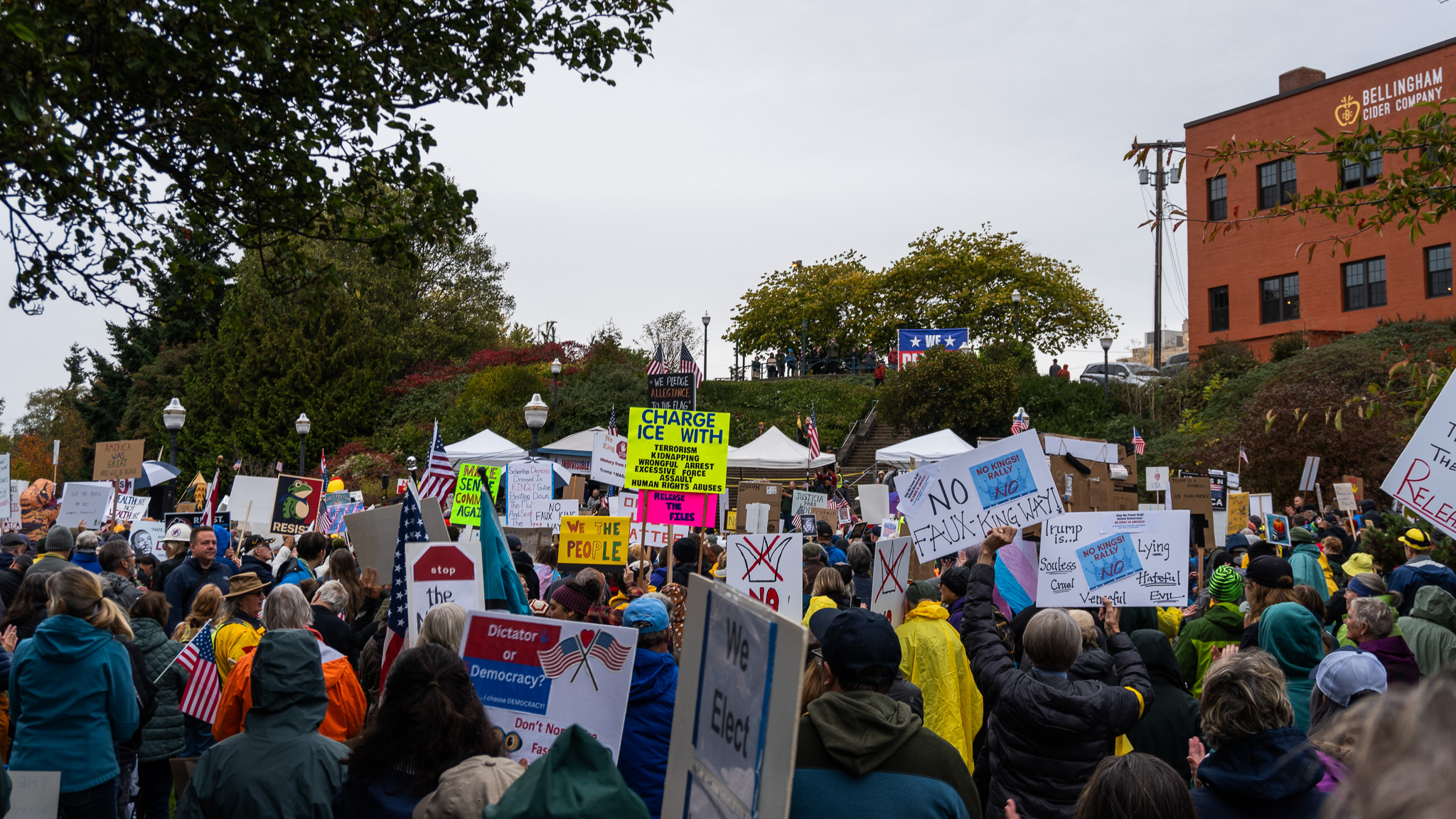 The Oct. 18 rally was the second nationwide event hosted by No Kings to bring residents in cities across the U.S. together in civil discourse. The June rallies brought thousands to the streets across Whatcom and Skagit Counties. Click here to see our previous coverage of the June rally.