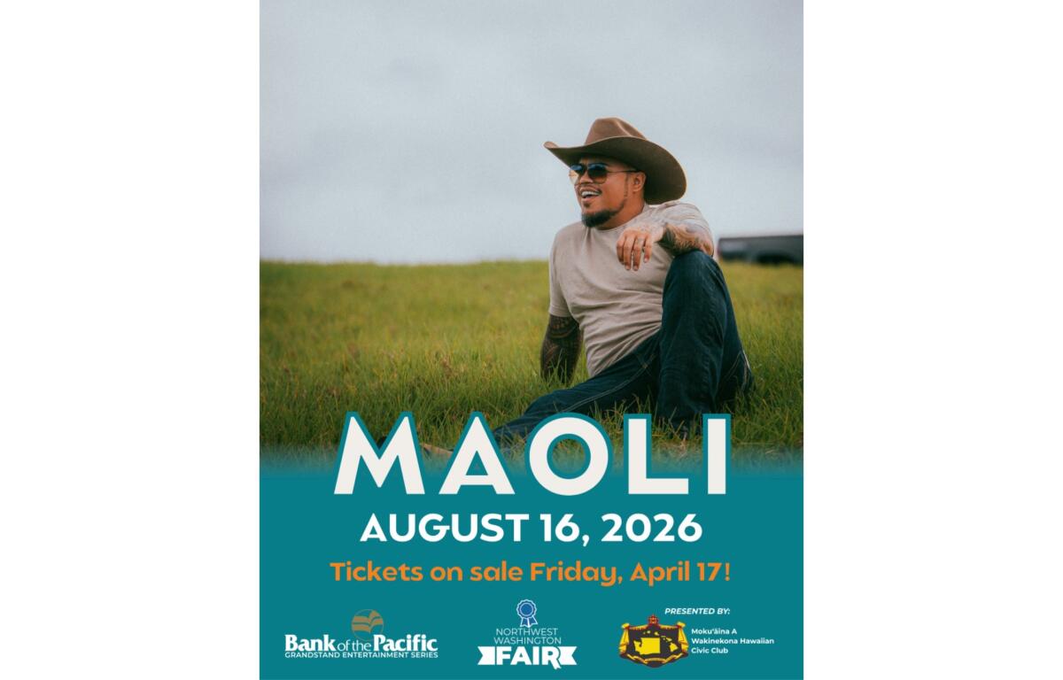 The Northwest Washington Fair has announced Hawai’ian country singer Maoli will be taking the Pacific Grandstand stage on Sunday, August 16.
