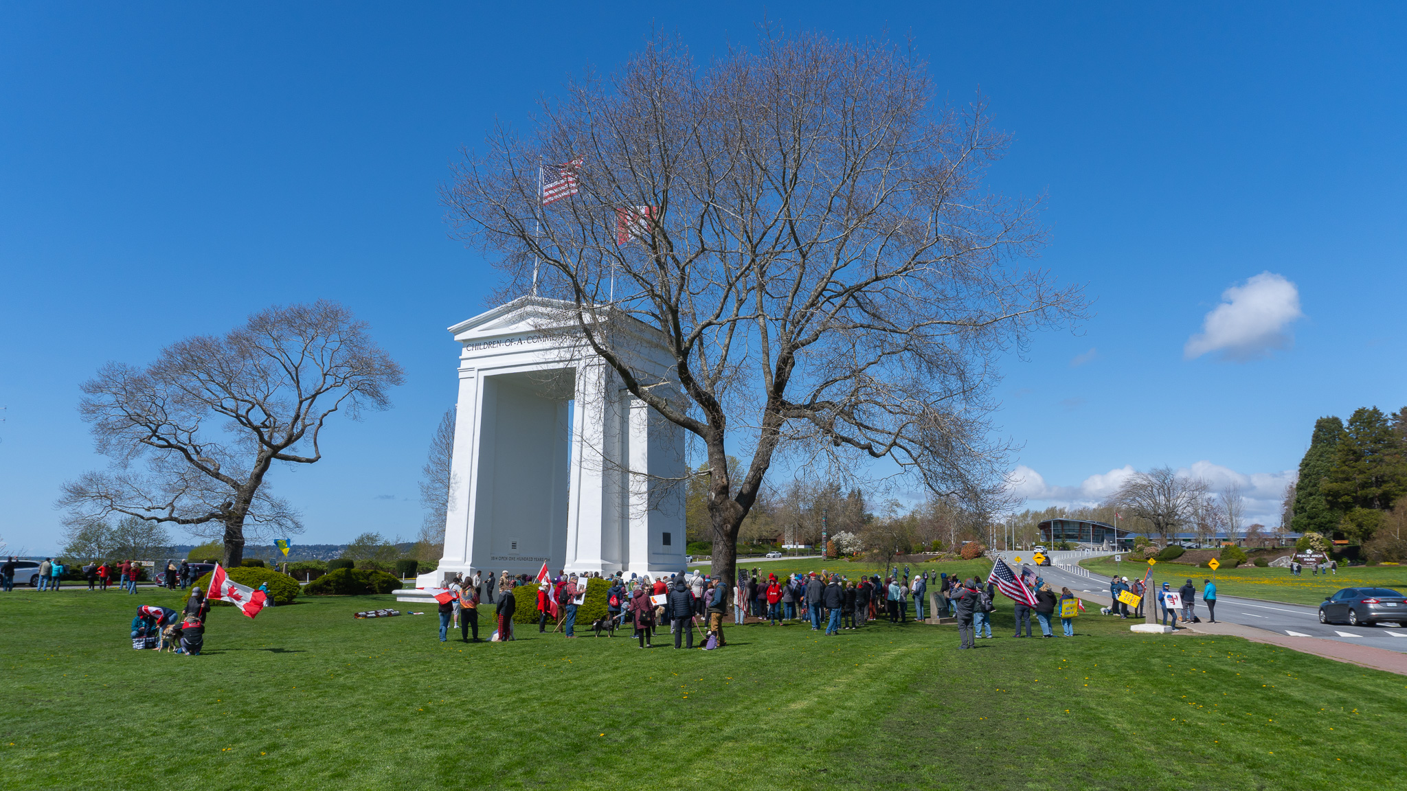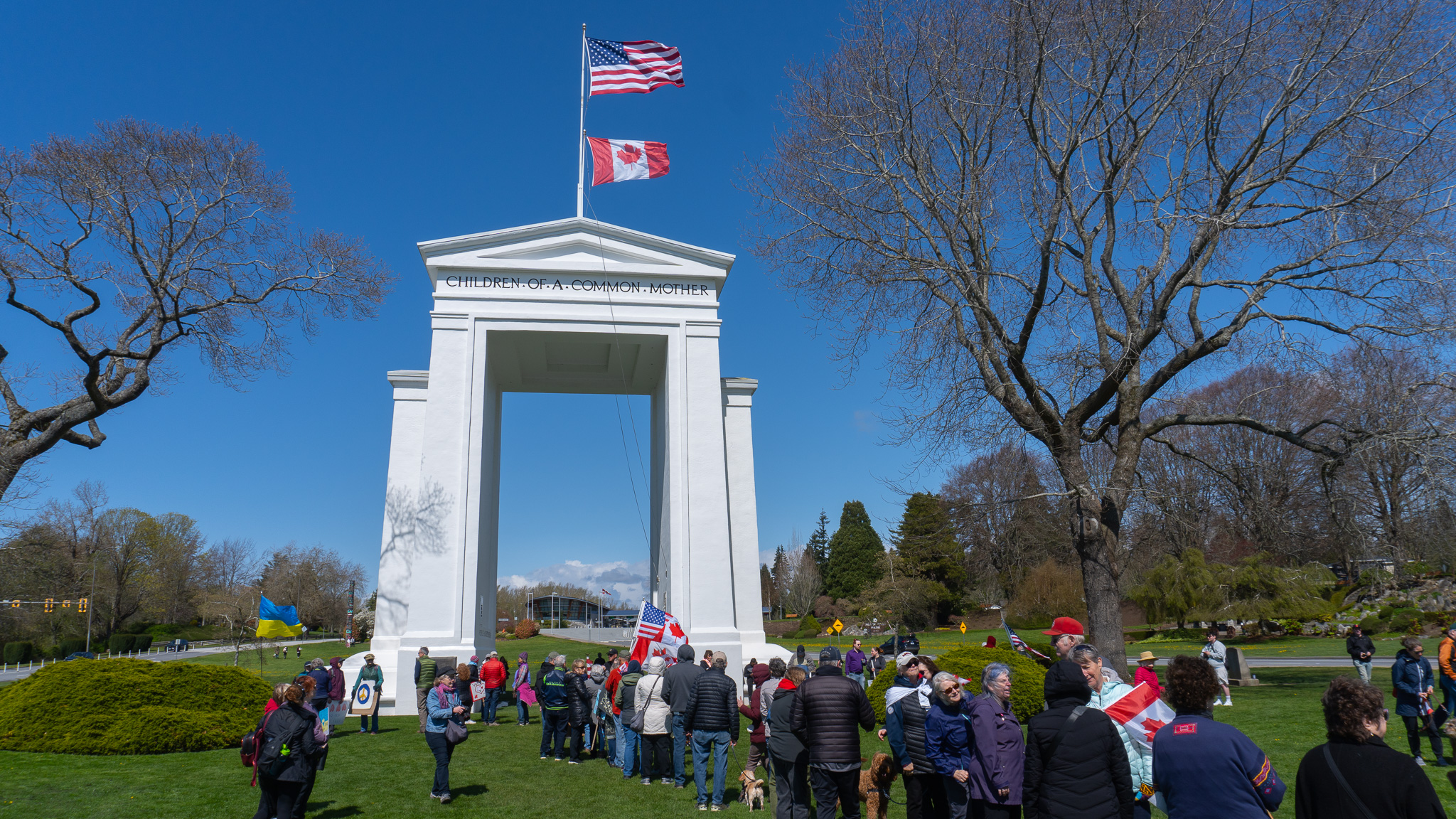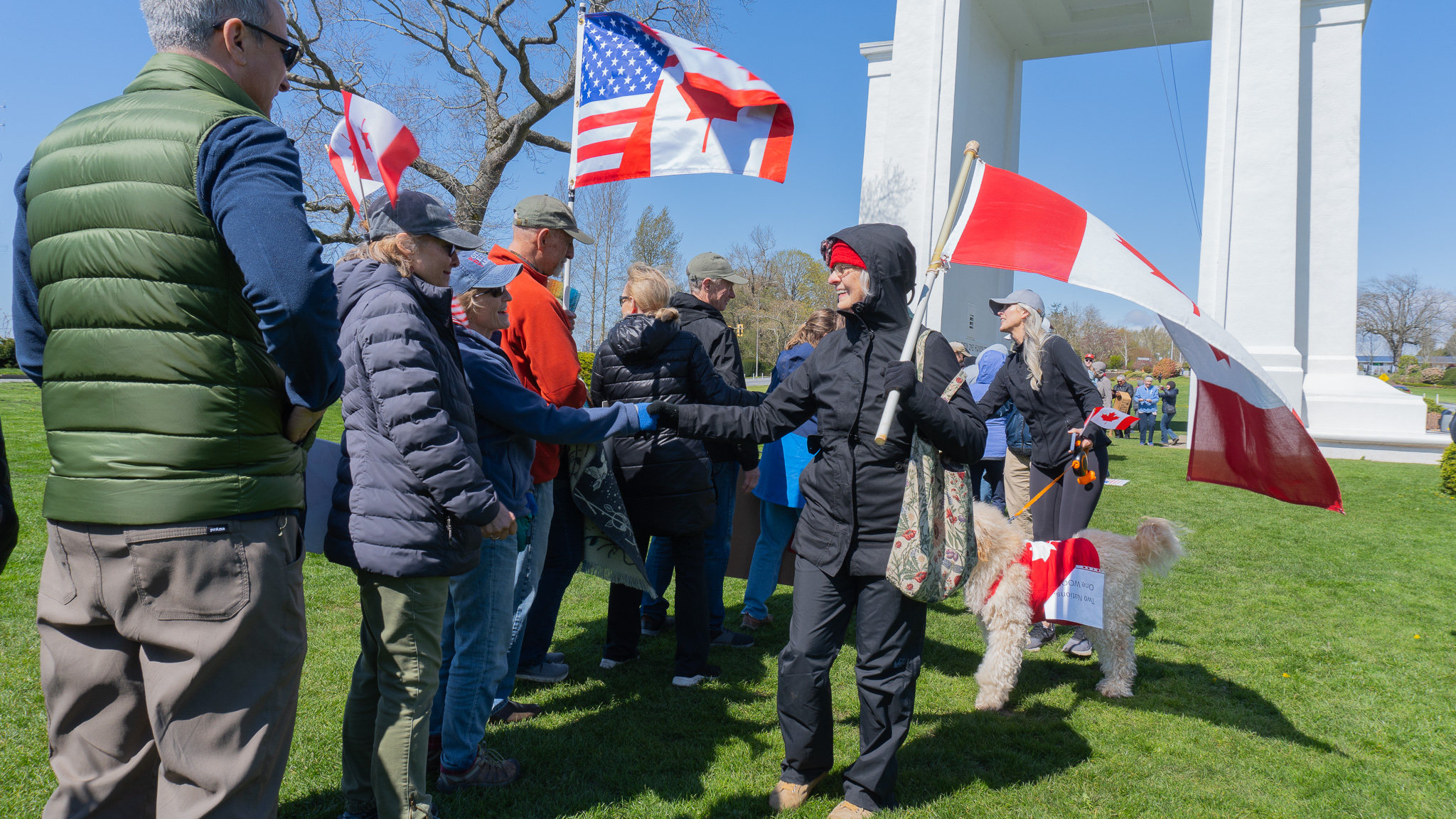 The “Peace, Love and a Handshake” rallies continue on Saturday, April 12 at Peace Arch Monument in Blaine.