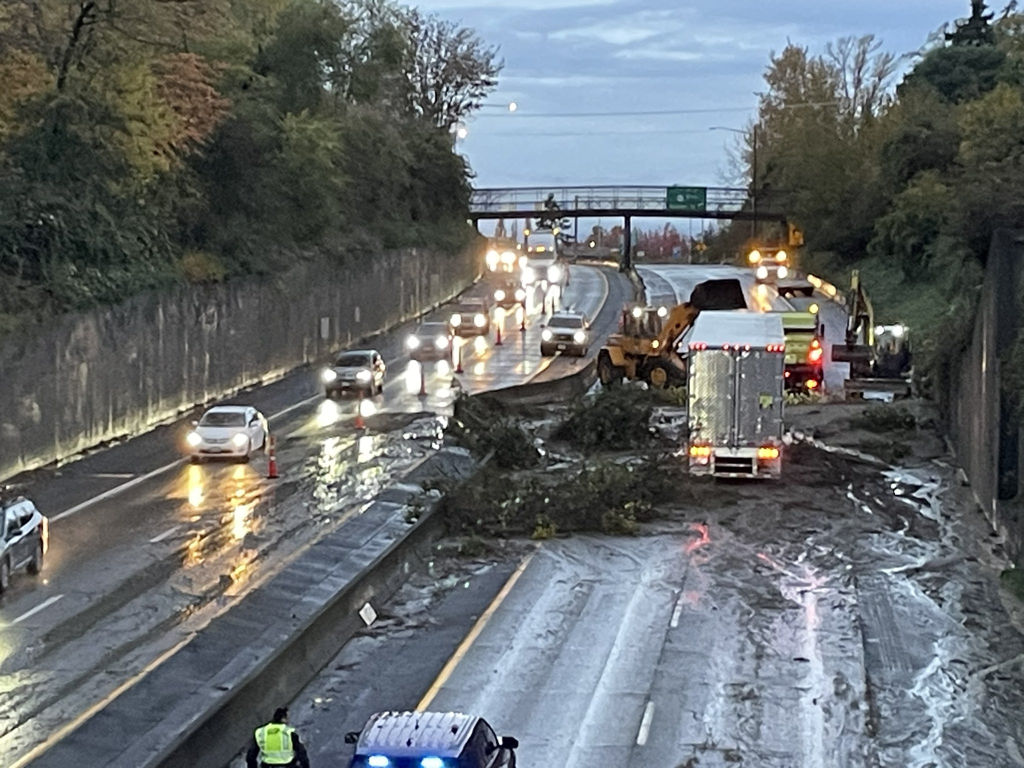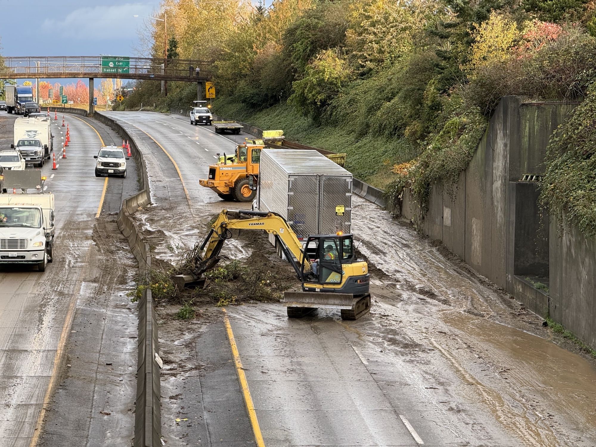 According to Washington State Patrol Trooper Kelsey Harding via X (formally Twitter), the southbound side of I-5 was partially blocked due to the slide as well.