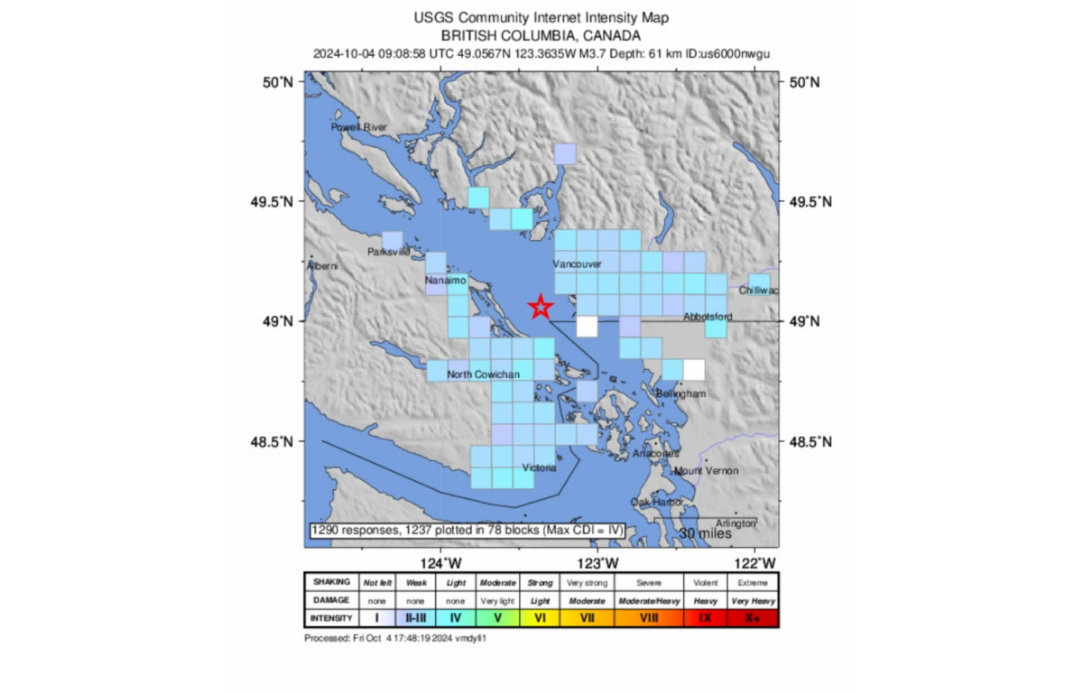 RICHMOND, BRITISH COLUMBIA (MyBellinghamNow.com) – Another earthquake shook western Washington early Friday, Oct. 4.