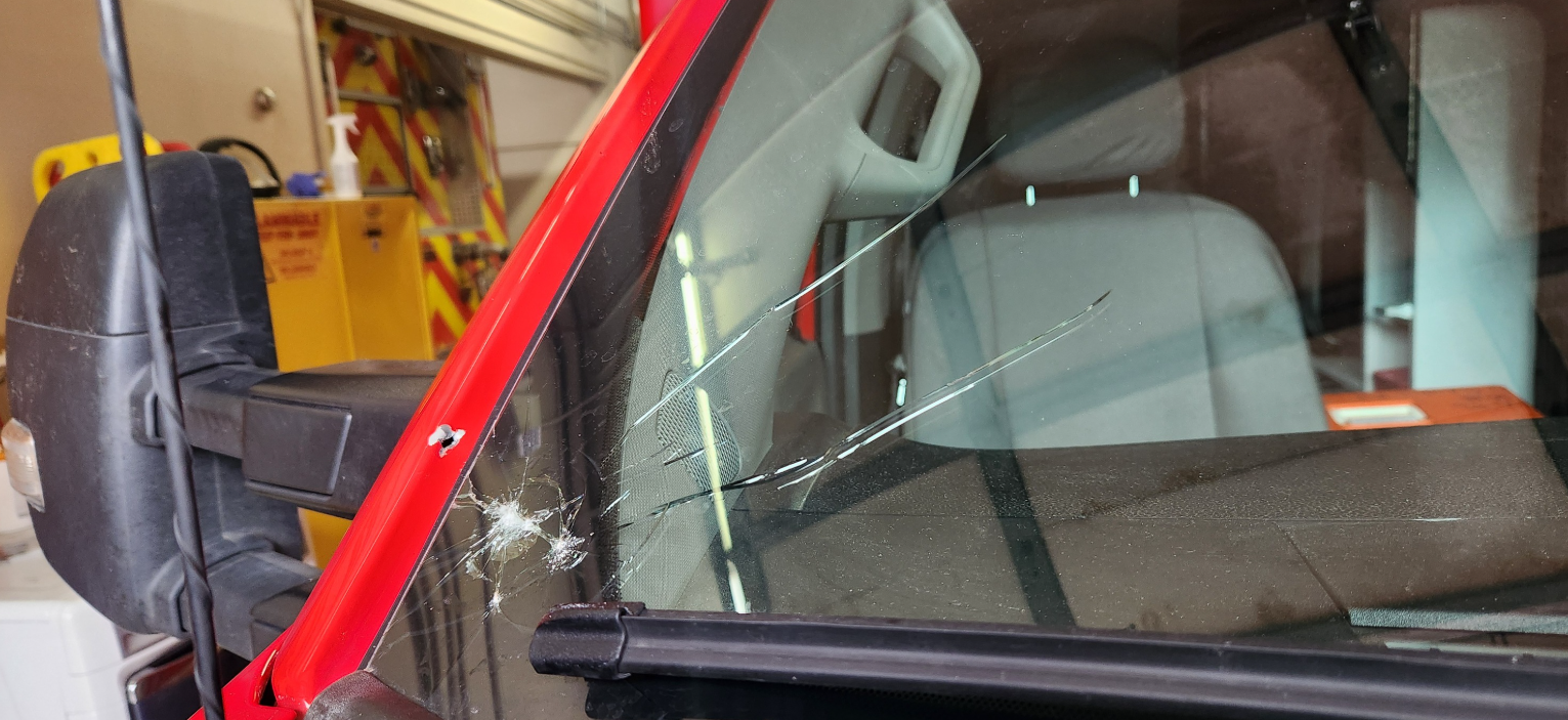 Whatcom Fire District 14 says in a social media post that the crew was transporting a patient with chest pains at about 9:30 p.m. when something hit the windshield with a loud bang. They examined the ambulance at the fire station after finishing the transport and decided it looked like the vehicle was hit by a bullet.