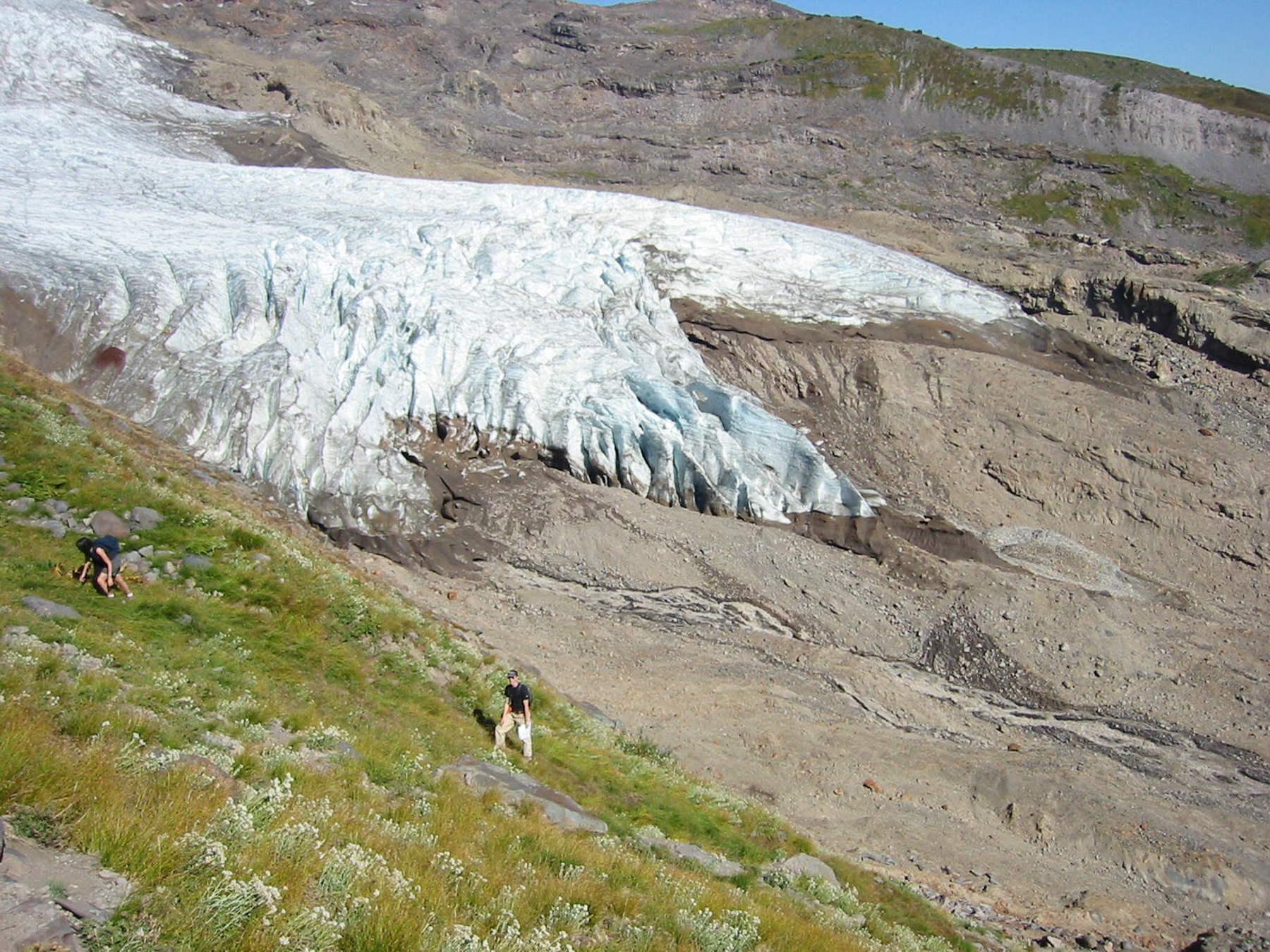 DC: Well, I mean, it’s unusual in the sense that we have to see a glacier grow from scratch. It’s a little bit hard to work with, I think, because it has so much rubble in it. It’s not like you get an ice core out of it or anything like that, because there’s just too much rock and debris in it. But I think there’s potentially some aspects of the glaciology that would be a really interesting study. Again, I’m not a glaciologist, so it’s a little hard for me to say, but it’s a cool thing. I’ve had students make studies of air photos, historical photos, to see how fast it advances, how thick it’s getting. There’s a bunch of different things you can use with that glacier that might inform more about what happens when a glacier advances and retreats again.