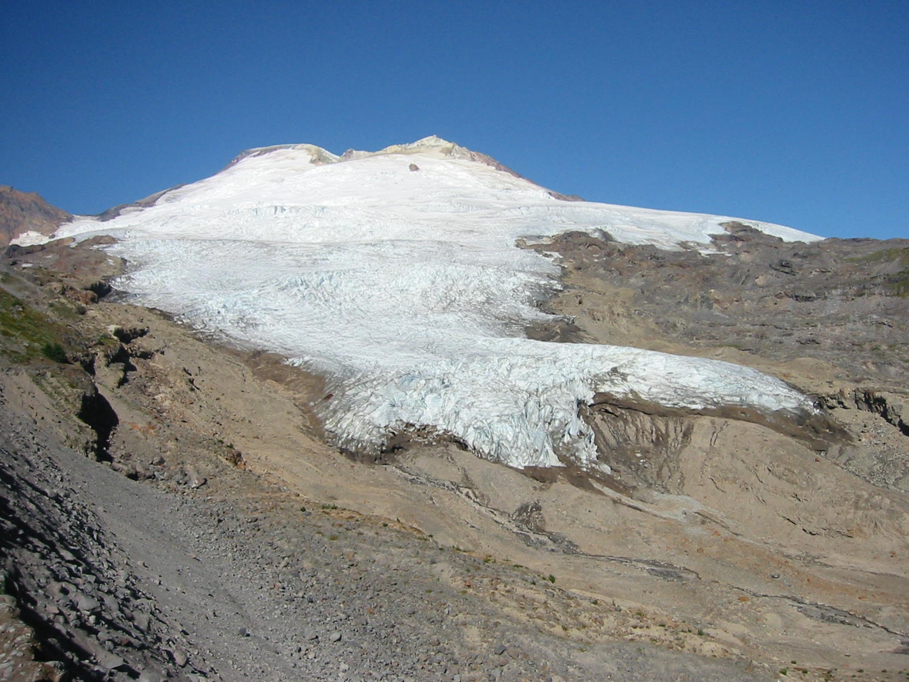 DC: Sure. Well, Mount Baker’s the second most heavily glaciated volcano in the Pacific Northwest, behind Mount Rainier, which is the most glaciated, and it’s, I actually don’t know, the true number of glaciers. Depends on how you divvy them up, because essentially they’re almost all touching each other. So they’re basically one large glacier, but with tongues coming out at the bottom. But they’ve got about 12 to 15 glaciers, and at least for the last 100-150 years, they’ve been pretty steadily retreating, with a few little readvances here and there, but mostly, they’ve been retreating, and it’s not a small retreat. They’re, in many cases, several kilometers shorter than they used to be 150 years ago.