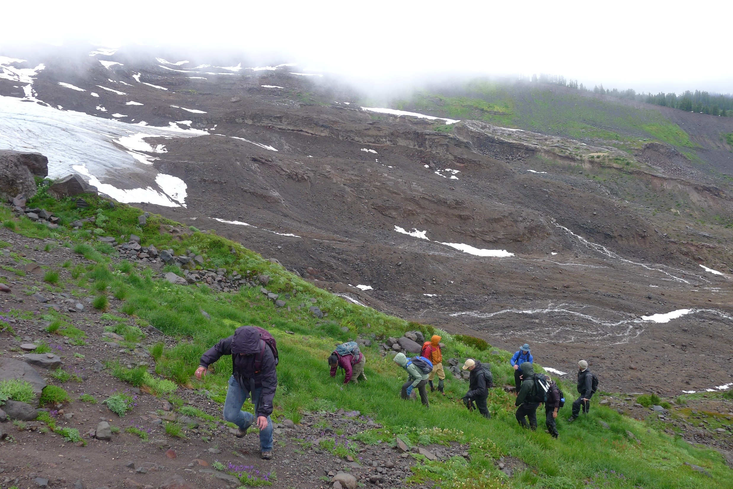 DC: Well, there’s, I always like to tell my students a couple of fun facts about glaciers, and one of the ones that I talk about pretty much every class I teach that has any glacier involvement at all, is that the Washington has one claim to fame in sort of the glacial world, is that we’ve got one of the only advancing glaciers in our state. And it’s not because of a climate change issue. It happens to be the crater glacier at Mount St. Helens. And the only reason it’s advancing still is it’s a baby glacier just got born after the 1980 eruption finished, and so it had this perfect north-facing bowl that’s shaded from the southern sun in the summertime, and it accumulates lots of snow in the wintertime. And so this glacier has been growing and growing for immensely over the last 30-40 years since the eruption, and it stayed there even after the 2004-2008 eruption, which didn’t melt the glacier away. It actually just caused it to surge forward. So that’s kind of a fun fact is that we do have this one glacier advancing, but it’s getting close to where it’s going to be in equilibrium with the climate. And once that happens, it’ll probably turn around and start melting backwards again, just like all the other glaciers. But for right now, it’s still advancing. As far as I understand.