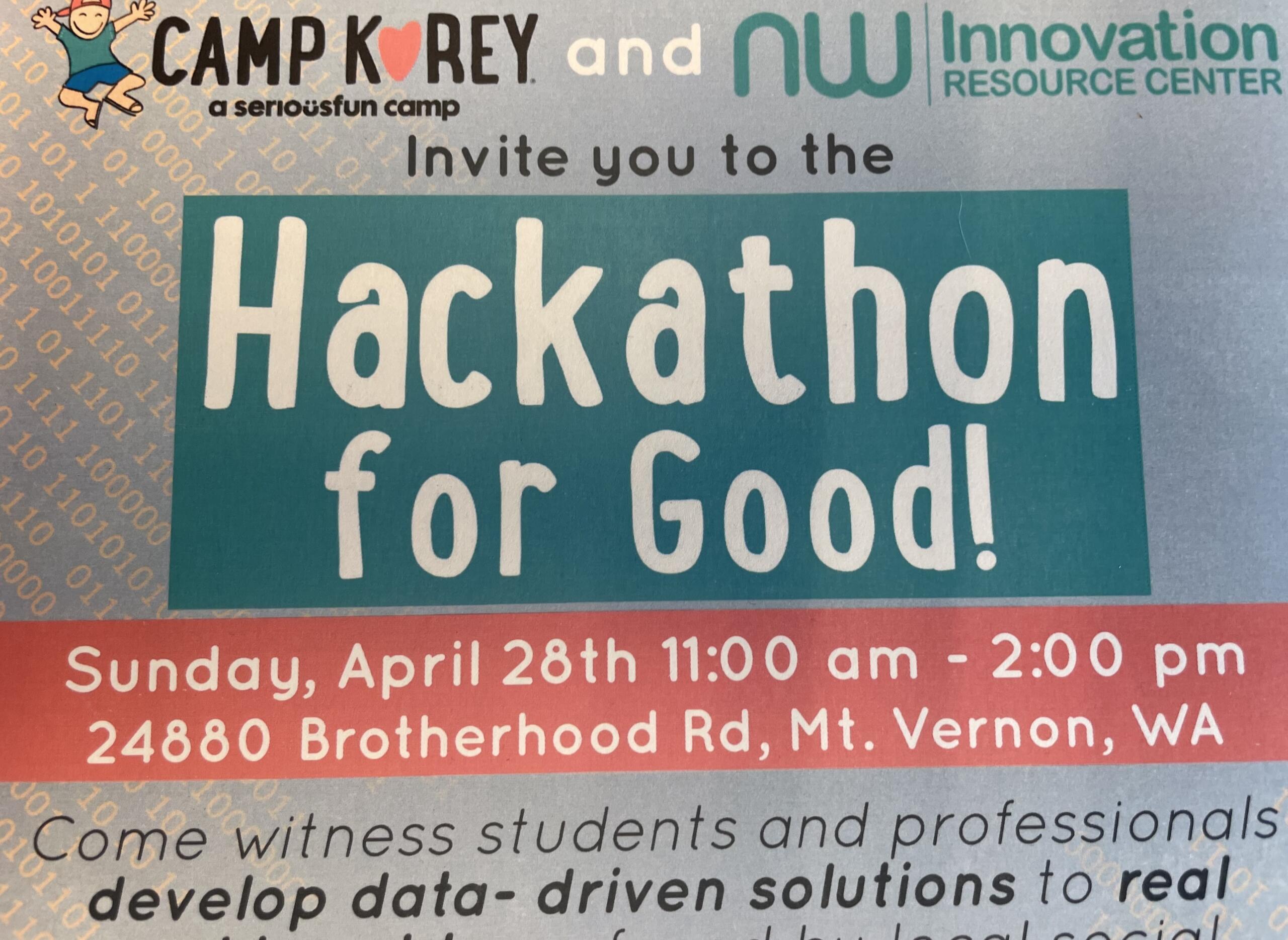 KGMI’s Dianna Hawryluk talks to NWIRC’s David Waldrop about the Northwest Innovation Resource Center and the Hackathon for Good! at Camp Korey in Mount Vernon.